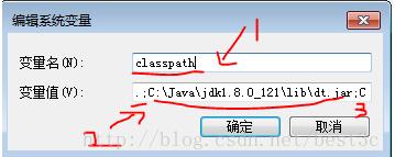 (2)变量值:.;C:\Java\jdk1.8.0_121\lib\dt.jar;C:\Java\jdk1.8.0_121\lib\tools.jar