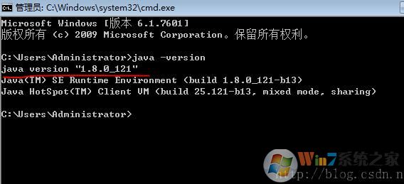 (3)显示 Java version"1.8.0_121“即为环境变量配置成功!