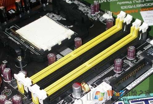 2、检查固定内存条的内存扣是否有完全内存牢牢的扣紧于内存插槽上;