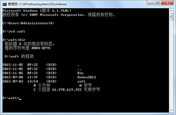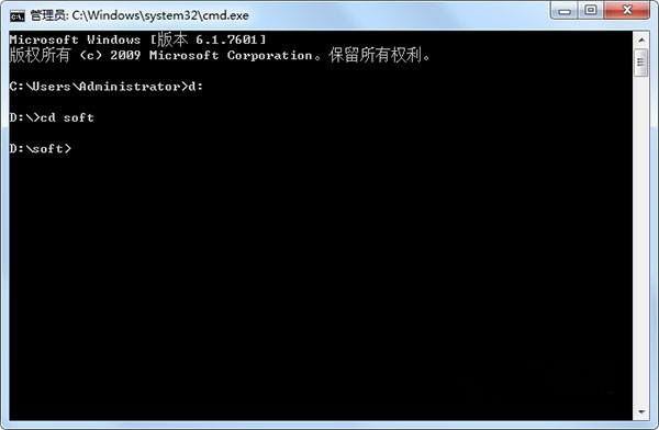 1、首先在运行窗口中输入“cmd”,接着输入d:回车进入D盘。在光标处输入 "cd soft",点击回车就可以进入目标文件夹。