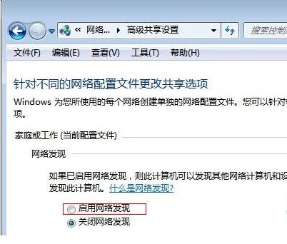 然后我们在回到启用网络发现界面点击开启试试即可,如果无法开启再重启试试,希望对大家有帮助