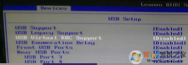 USB Setup 中的USB Virtual KBC Support默认是关闭的,把USB Virtual KBC Support设置为 Enabled可以解决问题。