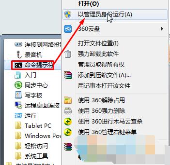 2、找到“命令提示符”,单击右键选择“以管理员身份运行”;