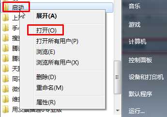 win7和XP一样保留了启动文件夹,文件程序放置在该文件夹下就可以开机启动了。