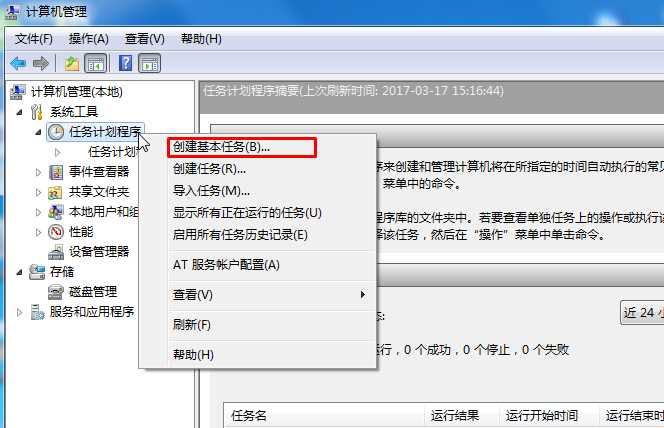 3、然后我们创建一个任务:然后右键点击创建基本任务;