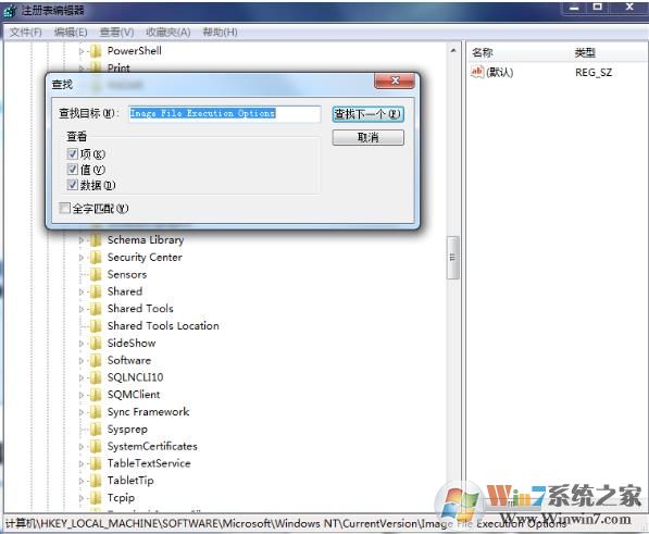 2、点击注册表编辑器上的 编辑—查找,打开查找,输入“Image File Execution Options”,然后点:查找下一个