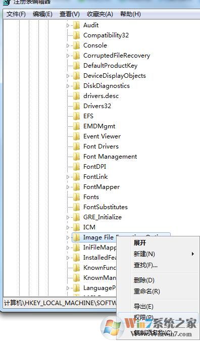 3、找到后,右键点“Image File Execution Options”,选择倒数第二项“权限”