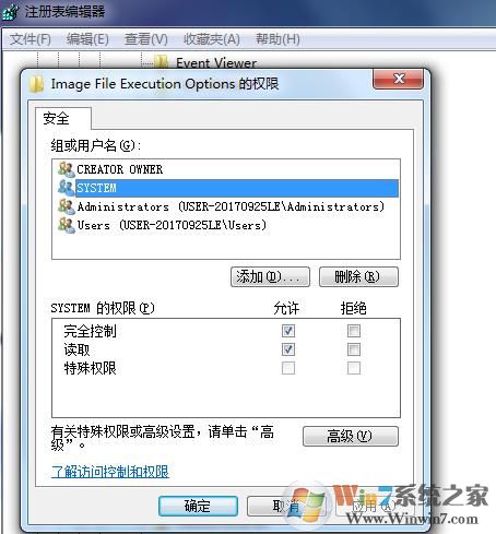 4、将“system”用户组选择“完全控制”,再点击应用按钮;