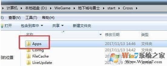 1、打开DNF根目录,可以Wegame左侧的地下城与勇士上右键打开菜单,选择“打开游戏所在目录”,然后进入“Start--Cross--Apps”;