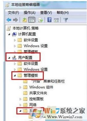 步骤三:在点击“用户配置”后,在下拉菜单中会弹出“管理模板”我们点击它,之后会弹出一个“系统”选项,我们点击;