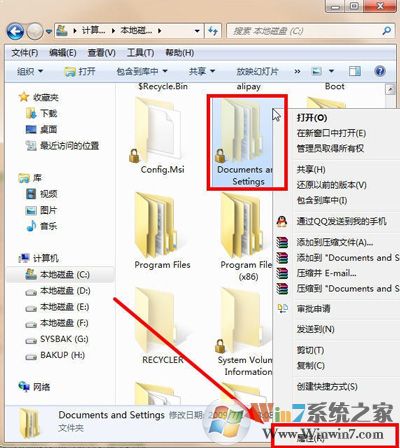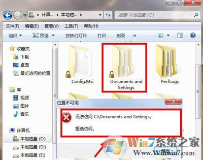 win7系统下Documents and Settings文件夹打不开拒绝访问的解决方法