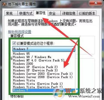 再鼠标右击地下城与勇士游戏的图标→切换至“兼容性”选项卡中→【选择目前的系统版本】。