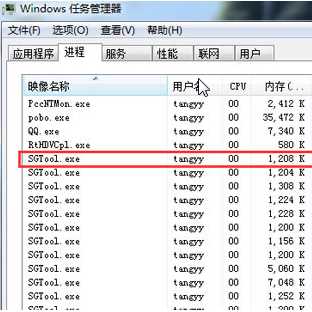 3、这时我们定位到了sgtool.exe所在的文件夹(我们还不能删除sgtool.exe,删除后会重新修复生成的);