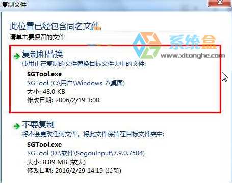 5、然后将创建好的文件复制到搜狗输入法的安装目录,在弹出的复制文件框中选择“复制和替换”即可(如无法替换,可用任务管理器将需要替换的文件的经常关闭后然后继续)系