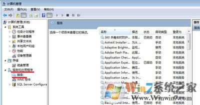 2、在计算机管理中,点击展开“服务和应用程序”,然后点击“服务”;