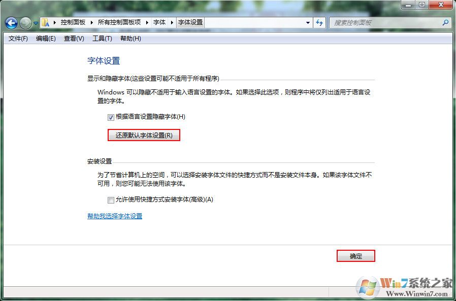 win7系统快速恢复默认字体方法