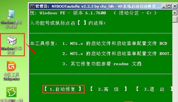 2、进入到PE后,一般桌面上都会有一个“Windows引导修复”图标,双击后如下并选择“自动修复”;