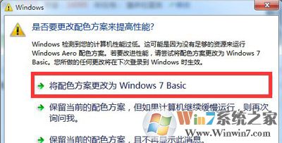 1、当电脑性能较差或电脑硬件配置较低时,建议关闭Windows Aero配色方案。通过在弹出的窗口中点击“将配色方案更改为Windows7 Basic”按钮来实现切换。