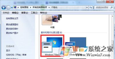 3、接着从打开的“个性化”界面中,点击“基本和高对比度主题”栏目中的“Windows7 Basic”主题并应用即可。