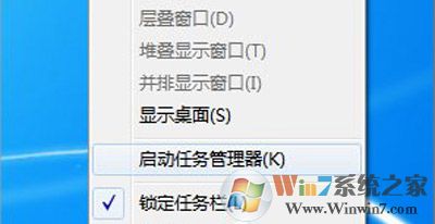 9、当然,我们可以通过结束不常使用的后台进程来提升电脑的性能。右击“任务栏”,从弹出的右击菜单中选择“启用任务管理器”项。