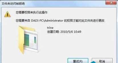 Win7删除文件夹需要管理员权限(获取管理员权限无效)的解决方法: