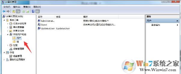 1、首先我们创建一个用户账户用于登录FTP进行操作。右键点击桌面的我的点击选择管理选项,进入管理界面打开本地用户和组选项,我们可以看到列表中的用户选项。