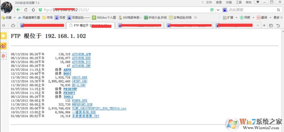 12、然后我们打开电脑的浏览器在上方的地址栏里面输入FTP://IP地址:2121点击回车就可以看到我们的FTP服务器已经添加成功了我们可以在添加的本地文件夹里面来管理我们FTP服务器文上传与下载。