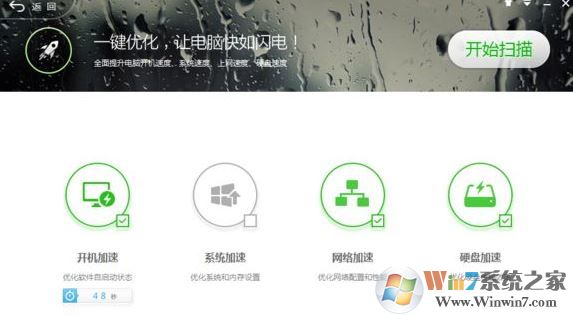 1、打开360安全卫士,点击“一键优化”,取消“系统加速”选项的勾,这样下次点击一键优化时就不会把视觉效果设置也更改了。