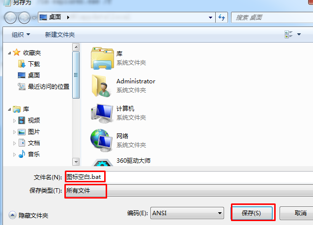 2、另存为图标空白修复.bat 文件格式选择为全部