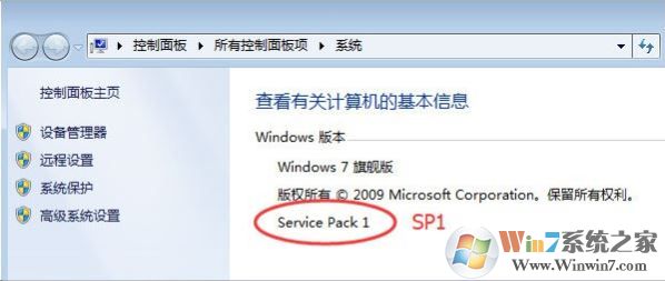 注:我的电脑--属性内可查看当前系统版本,非SP1需要先升级Win7 SP1才行