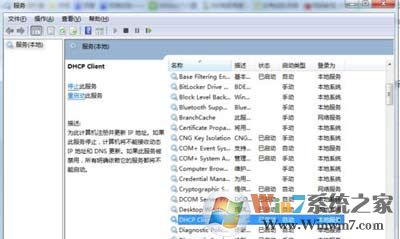 2、进入服务后,找到“DHCP Client的服务”查看其是否已经启动;