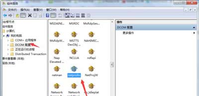 6、点击“DOCM配置”,然后在右侧的列表中找到“netprofm”,右键点击它打开菜单,选择“属性”;