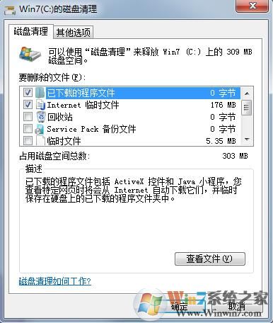 磁盘清理在弹出的窗口中,选中所有的选项,如下图,之后点击确定即可开始磁盘清理了: