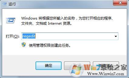 1、首先在开始运行中输入Regedit注册表命令打开注册,大家可以先直接使用快捷键:Win+R打开运行命令框,然后再输入regedit命令。并回车确认进入注册表即可,如下图: