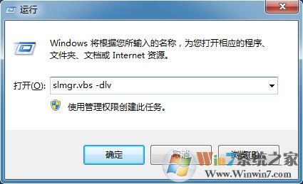 1、首先开始菜单--运行命令--slmgr.vbs -dlv--确定;