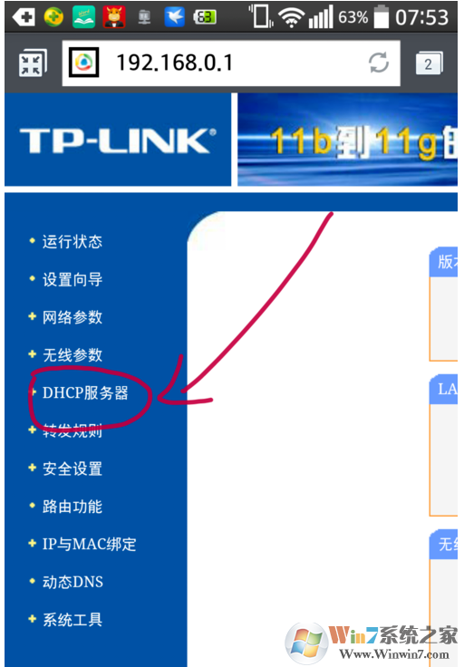 2、进入路由器首页,如图选择“DHCP服务器”进入配置界面。