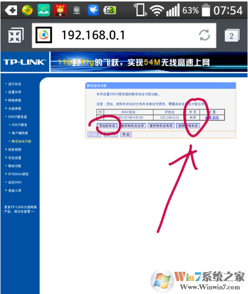 5、静地址分配可以为某些特定电脑指定预留IP地址,其它电脑和手机将无法再分配此IP地址。有时DHCP服务器也可能假死,导致固定IP地址的电脑能上网,而自动获取IP的其他电脑无法获取到IP,这时需要重新启动一下路由器。