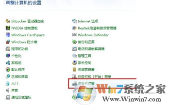 3、在弹出来的控制面板界面中选择点击“设备管理器”;