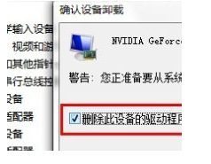 5、接着在弹出来的确认设备卸载对话框中,在“删除此设备的驱动程序软件”前面打上勾,点击确定即可卸载,卸载完成后重启电脑(可能需要重启两次);