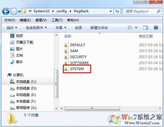 3.点击进入regback文件夹,可以看到SYSTEM文件,把它复制替换到config文件夹。
