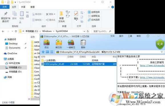 2、打开解压后得到的文件夹,复制文件“d3dcompiler_43.dll”到系统目录下。系统目录分为2种,非别为: