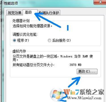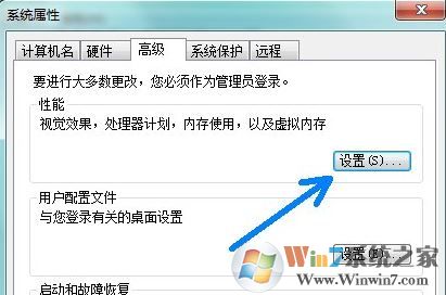 2、点击“高级”,然后点击性能下面的【设置】按钮;