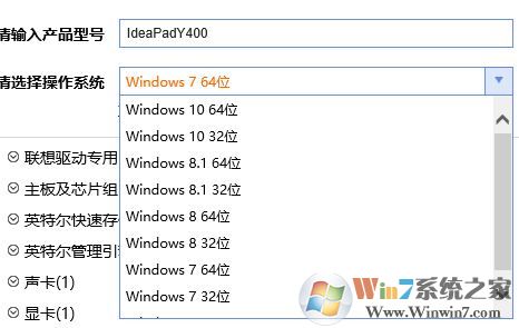 2、接着按自己的笔记本型号选择对应的笔记本,选择完成后选择操作系统版及系统位数,如图: