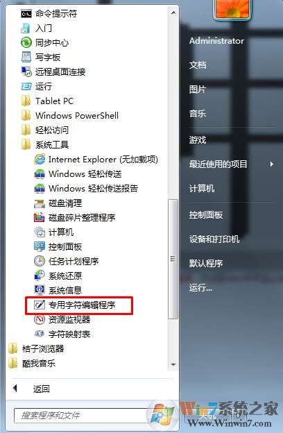 1、从开始菜单——所有程序——附件——系统工具,然后打开“专用字符编辑程序”;