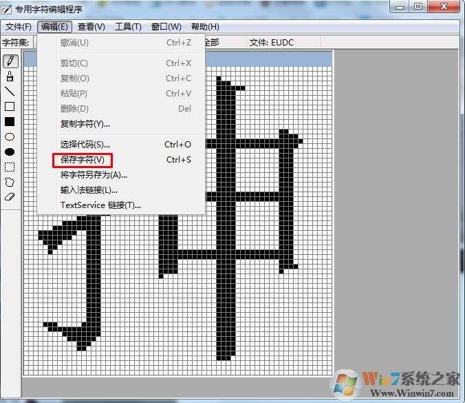 9、选择菜单栏的编辑-保存字符,到此我们合成的这个 提手旁+神的半个的字就完成了。
