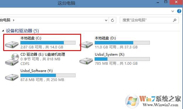 2、这时我们可以看到C盘,其实也就是在win7系统中的C盘,也就是系统盘了。