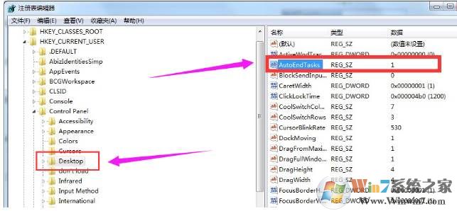 3、在右边找到“AutoendTasks”双击。