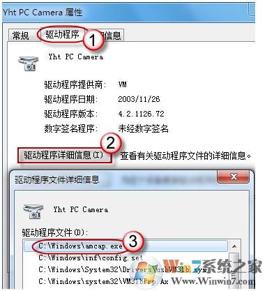 3、在“驱动程序”选项卡上,单击“驱动程序详细信息”,可以看到.exe 文件的详细路径(通常位于系统盘 Windows 文件夹下)。