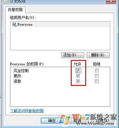 5、回到权限编辑,设置everyone的权限为完全控制;