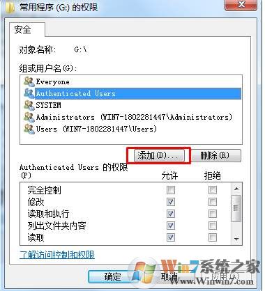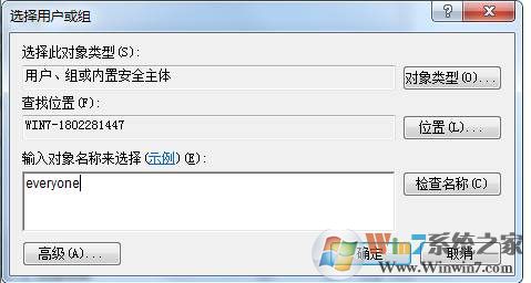 3、再点击添加按钮,如下图(下图小编已经添加了everyone),如果有的只要设置一下everyone的权限就可以了~